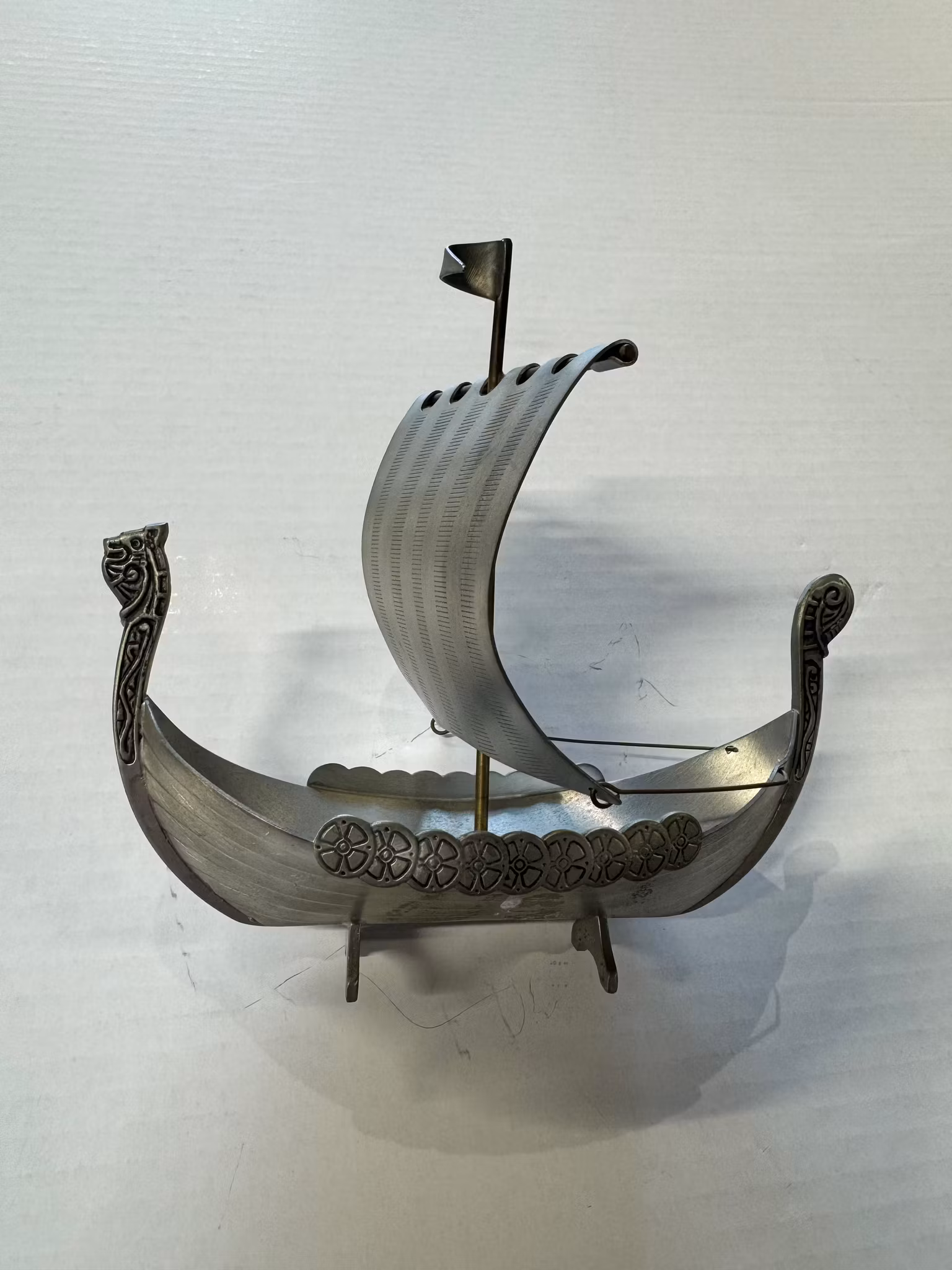 Viking Skip i tinn 300,- Høyde 16,8 cm Lengde 16,5 cm Produktet finnes dessverre ikke i lager. Artikkelnummer: 505 Del Informasjon Høyde 16,8 cm Lengde 16,5 cm