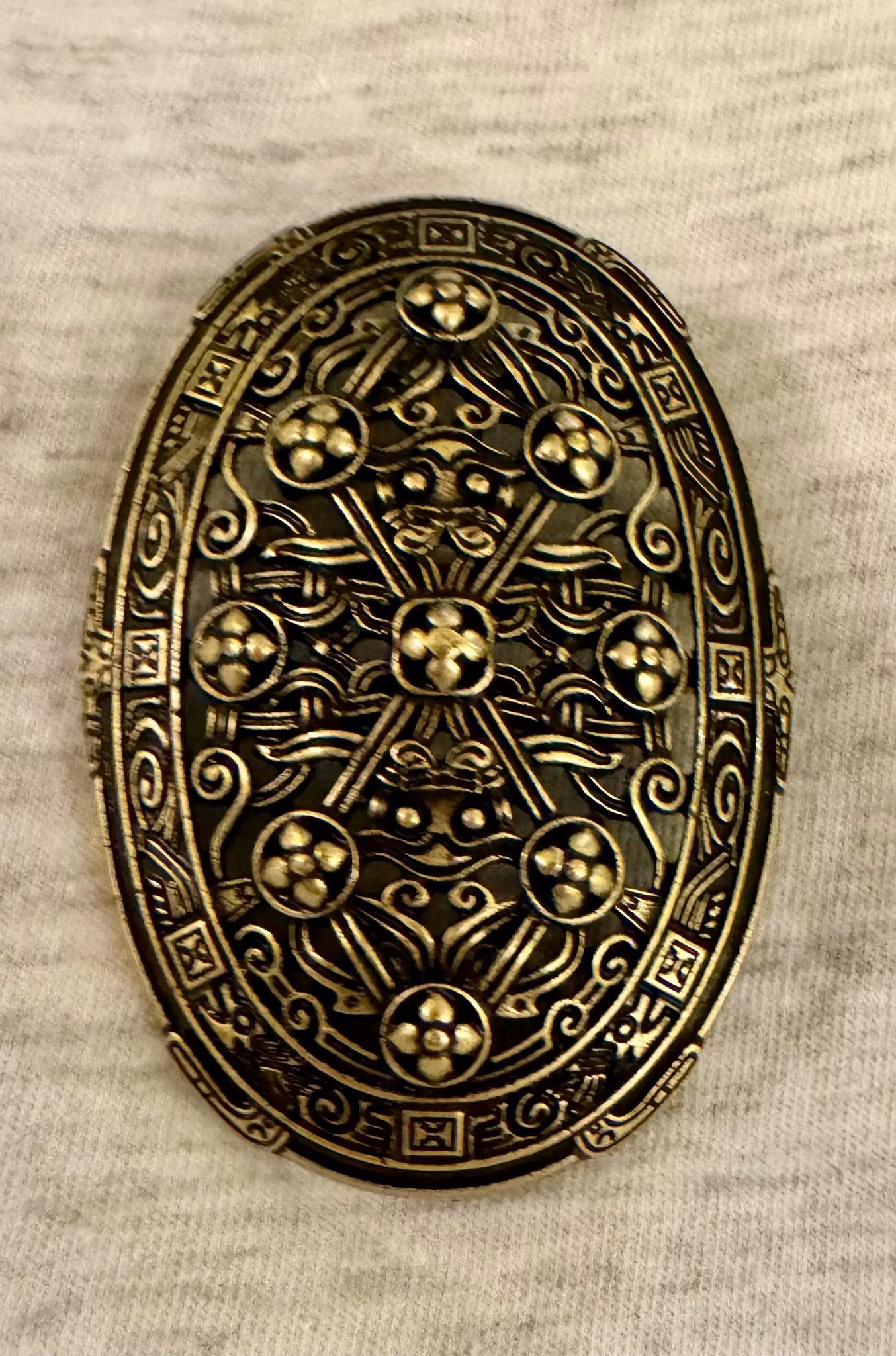 Viking Brosje 300,- Lengde 6 cm. Bredde 4,2 cm.Bronsefarget. På lager Legg i handlekurv Lagerbalanse: 2 Artikkelnummer: 525 Del Informasjon Lengde 6 cm. Bredde 4,2 cm.Bronsefarget.
