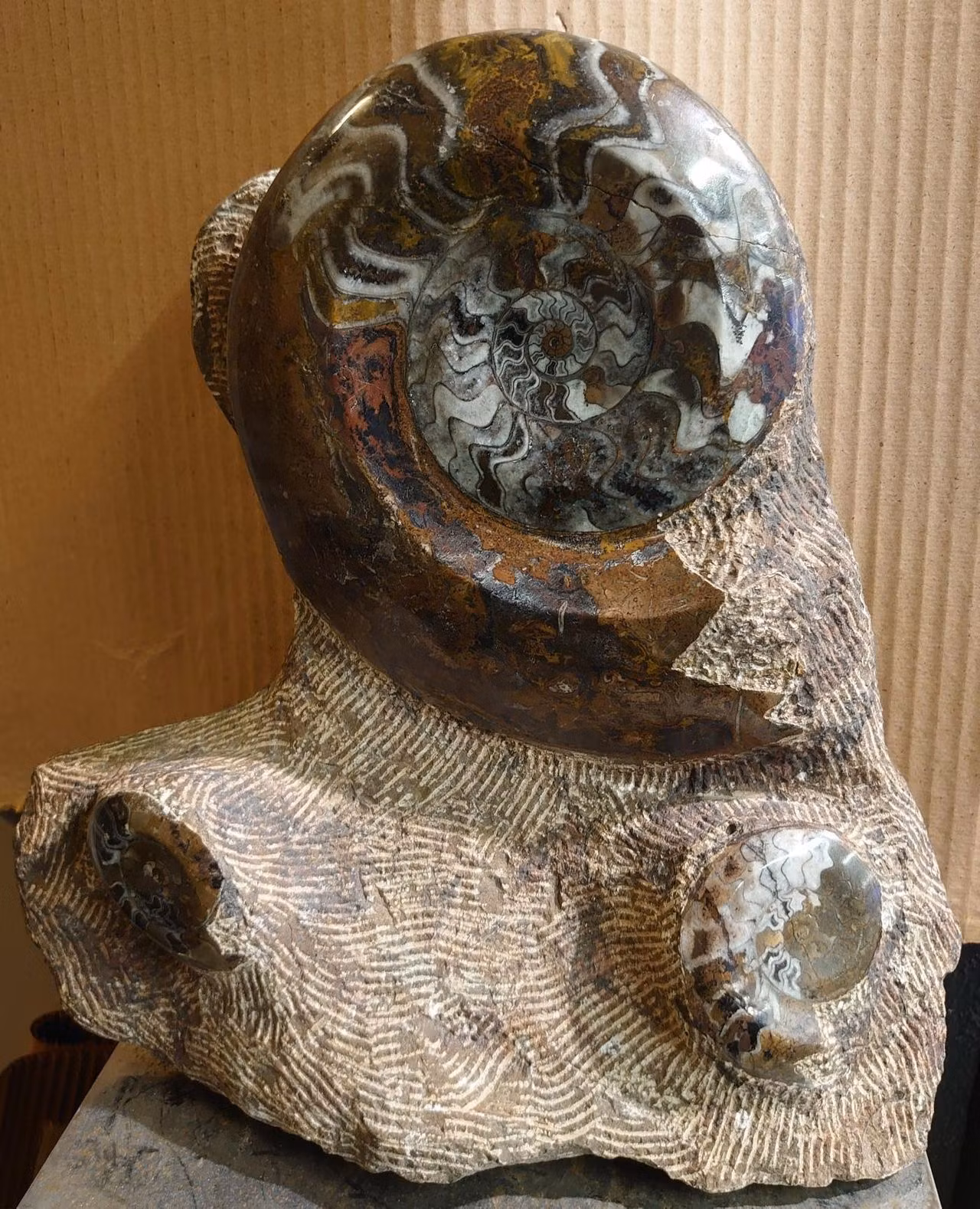 Ammonitt Fossil. 4 300,- Ammonitt Fossil. Høyde 35 cm. Bredde 31 cm. Vekt 10 kilo På lager Legg i handlekurv Lagerbalanse: 1 Artikkelnummer: 554 Del Informasjon Ammonitt Fossil. Høyde 35 cm. Bredde 31 cm. Vekt 10 kilo