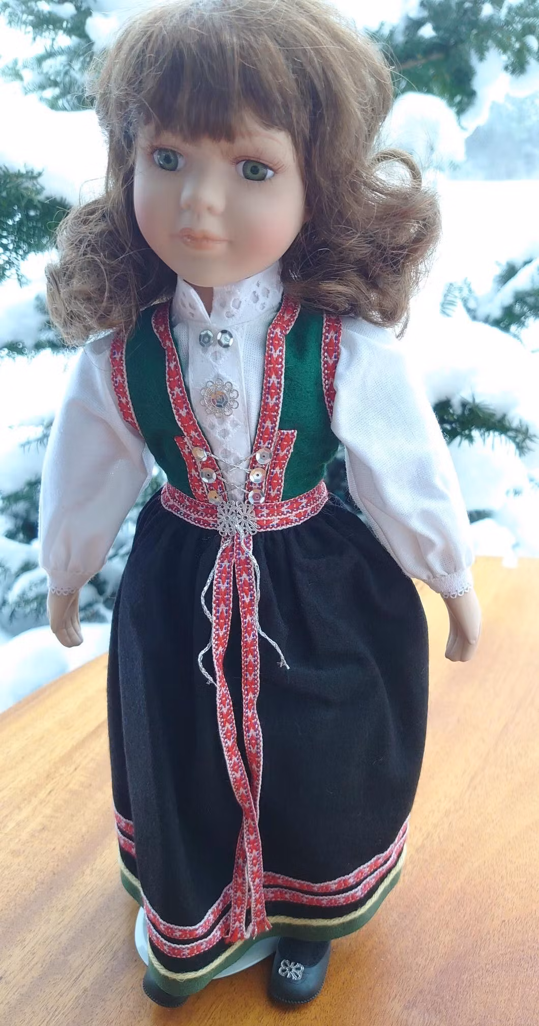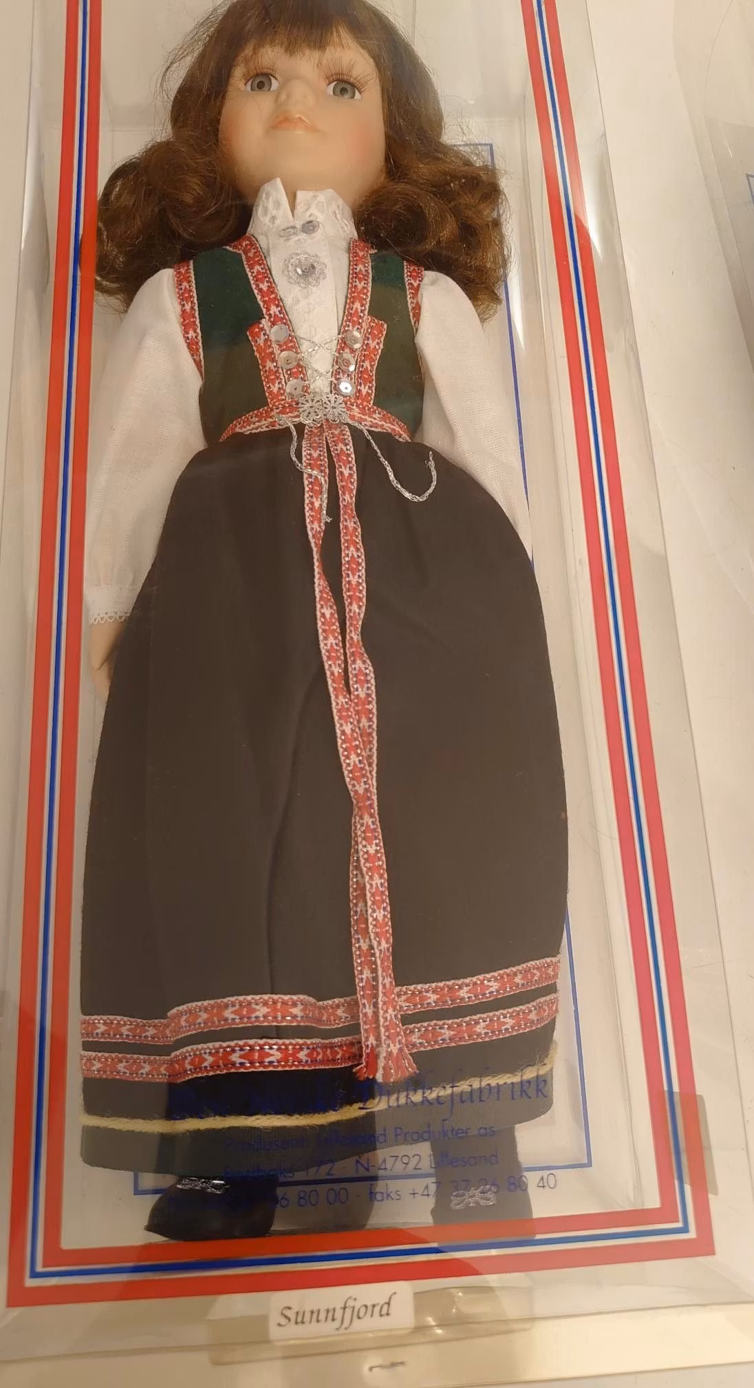 Bunadsdukke Sunnfjord 500,- Bunadsdukke Sunnfjord, Dukken har ikke blitt lekt med, kun oppbevart i eske. Høyde ca. 40 cm. Laget i porselen. På lager Legg i handlekurv Lagerbalanse: 1 Artikkelnummer: 314 Del Informasjon Bunadsdukke Sunnfjord, Dukken har ikke blitt lekt med, kun oppbevart i eske. Høyde ca. 40 cm. Laget i porselen.