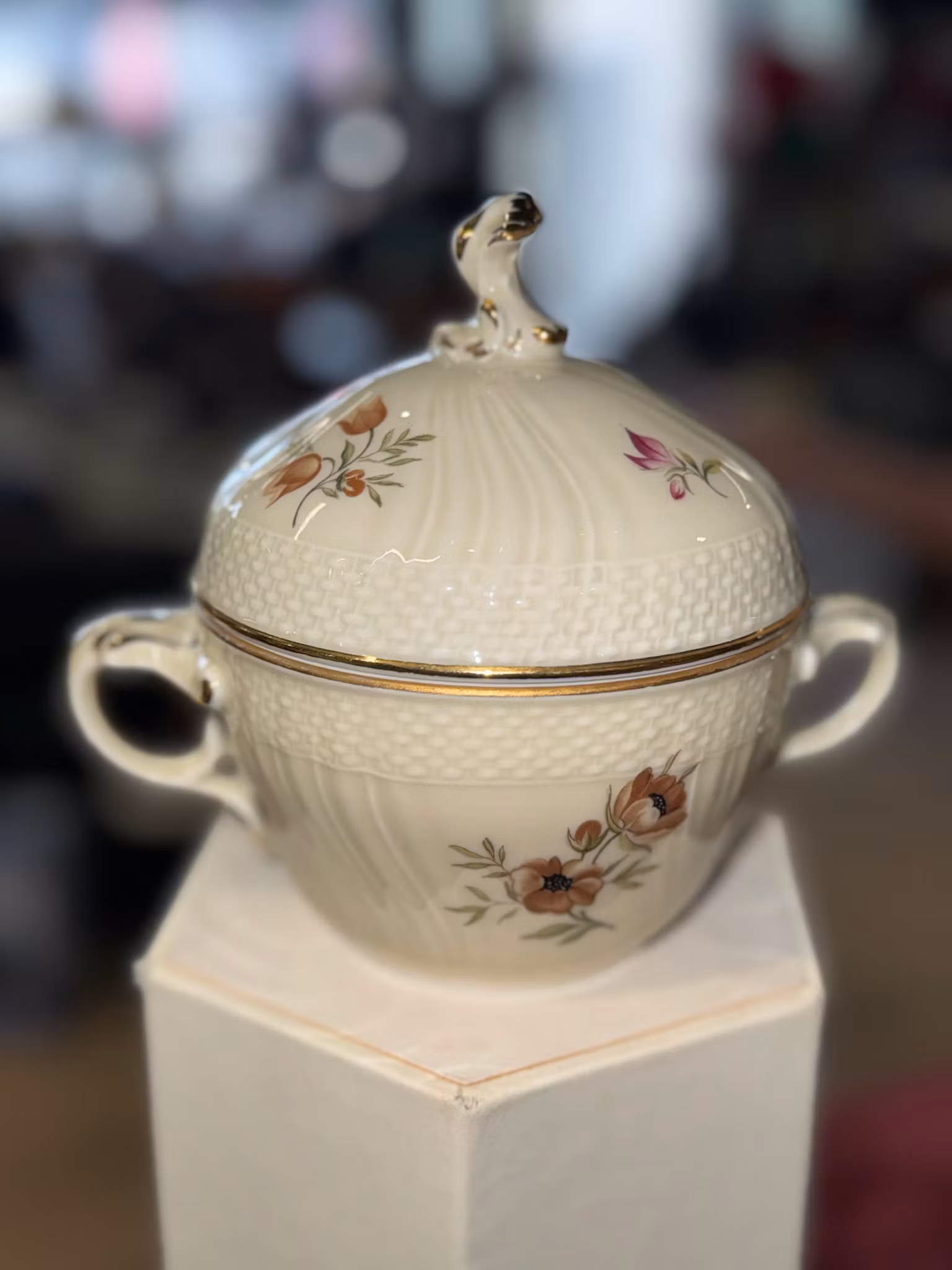 «Frijsenborg « Royal Copenhagen Sukkerkopp 450,- Høyde uten lokk 7,5 cm. Ø- 10 cm. På lager Legg i handlekurv Lagerbalanse: 1 Artikkelnummer: 1058 Del Informasjon Høyde uten lokk 7,5 cm. Ø- 10 cm.