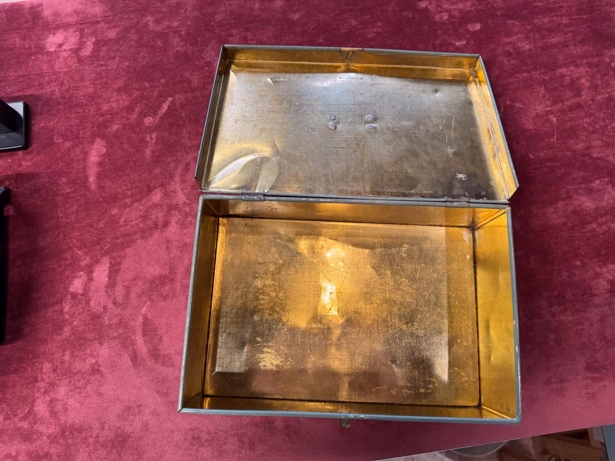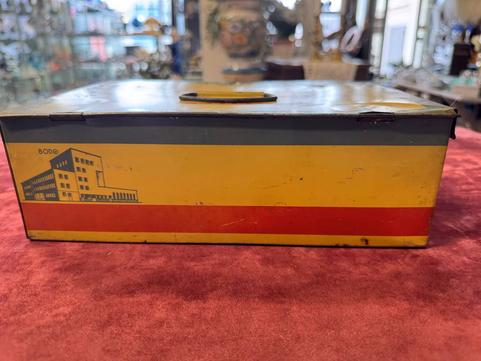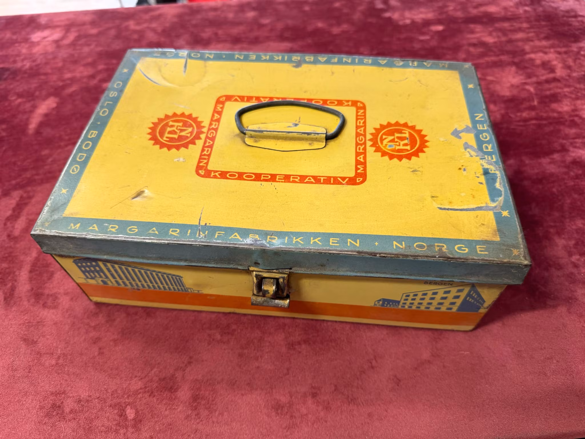 Margarin boks i metall. Margarinfabrikken Norge 400,- Margarin boks i metall. Margarinfabrikken Norge. Oslo-Bodø- Bergen. H-9 cm. Bredde 18,3 cm. Lengde 27,4 cm. Kr 400,- På lager Legg i handlekurv Lagerbalanse: 1 Artikkelnummer: 1299 Del Informasjon Margarin boks i metall. Margarinfabrikken Norge. Oslo-Bodø- Bergen. H-9 cm. Bredde 18,3 cm. Lengde 27,4 cm. Kr 400,-
