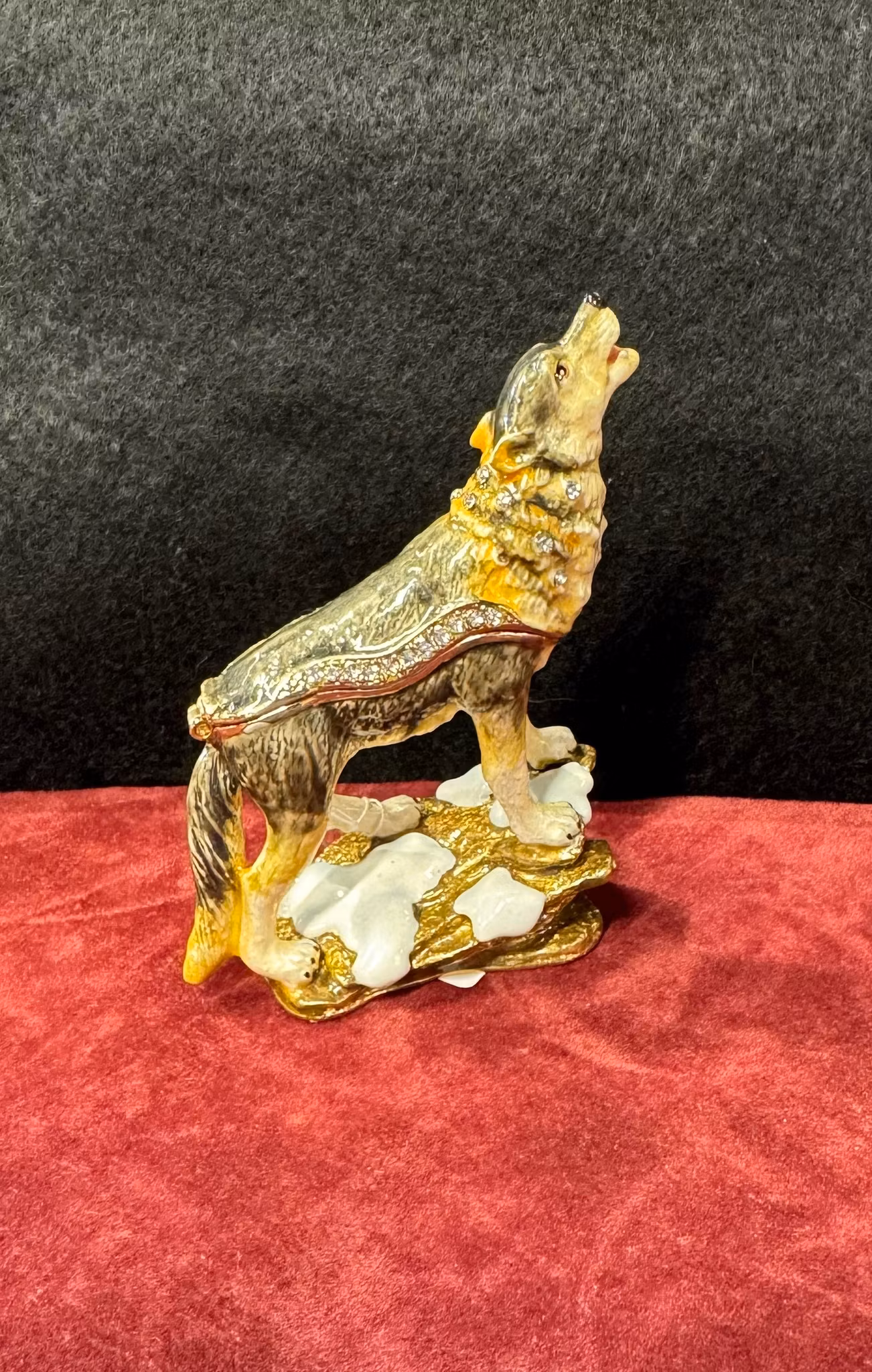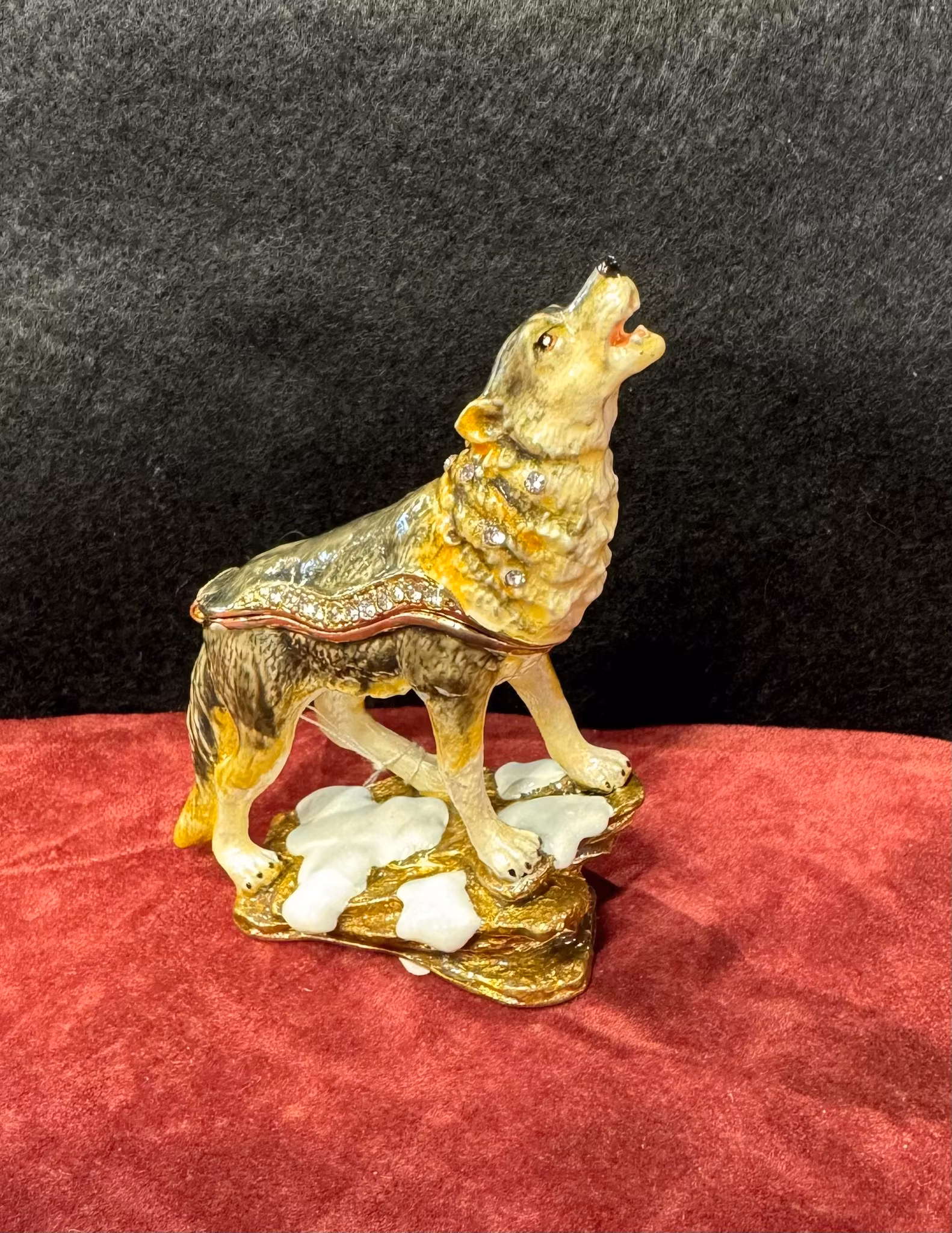 Smykkeboks Ulv 775,- Høyde 9 cm. På lager Legg i handlekurv Lagerbalanse: 1 Artikkelnummer: 283 Del Informasjon Høyde 9 cm.